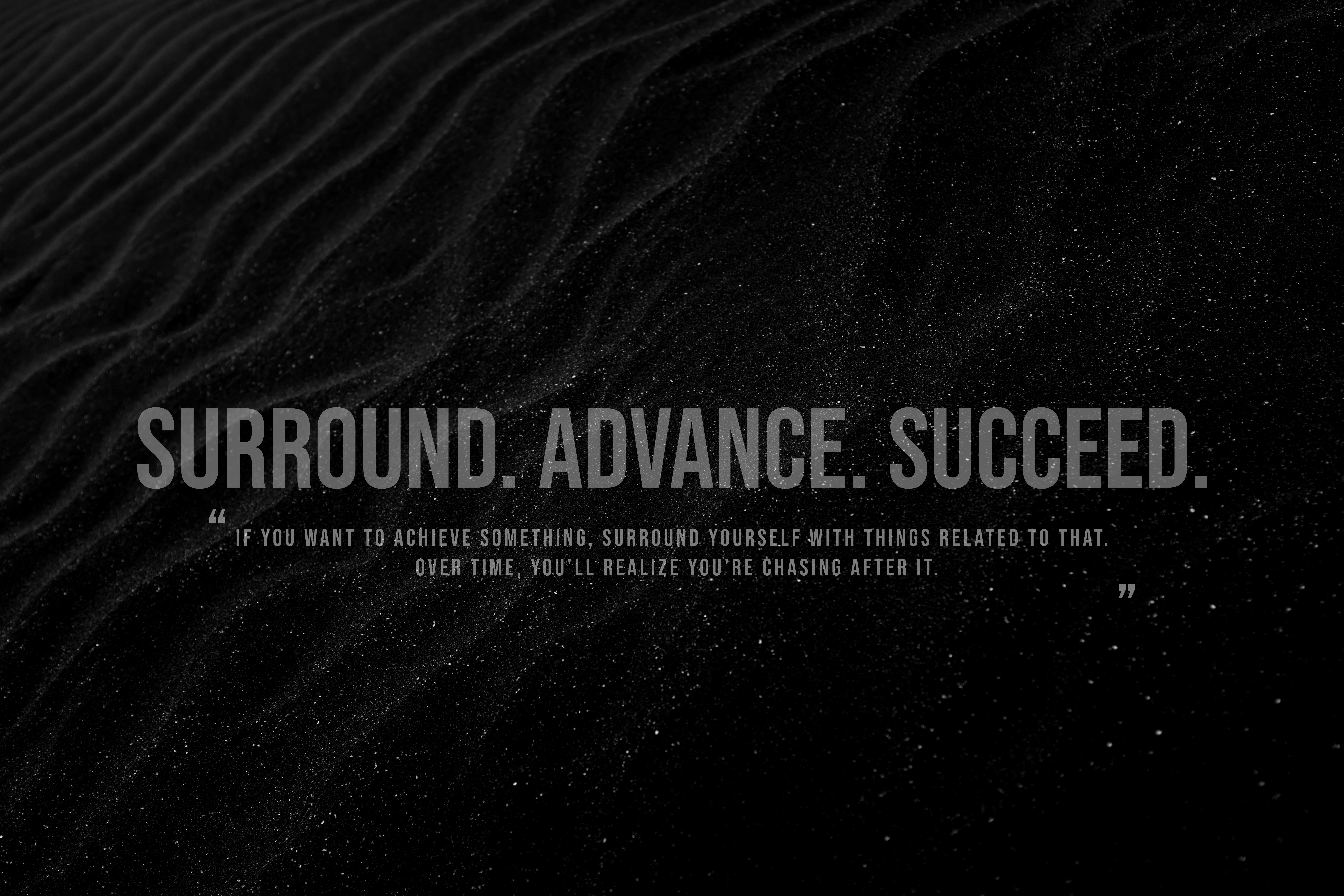 One of the guiding principles along this journey has been SAS (Surround, Advance, Succeed). We surround ourselves with elements aligned with our goals and believe that this approach helps us move closer to success. We even designed a wallpaper for this concept (crafted based on a photograph by Adrien Olichon).